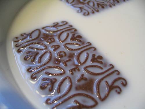Cubrir la torta con el postre caliente y dejar enfriar, decorar con cubanitos, chocolate rayado, rocklets,
